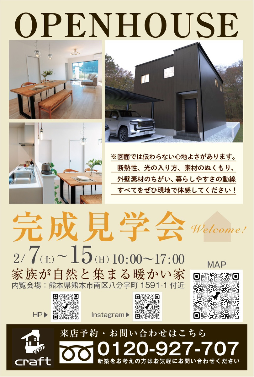 2月の完成見学会を熊本市南区八分字町にて開催いたします🏠